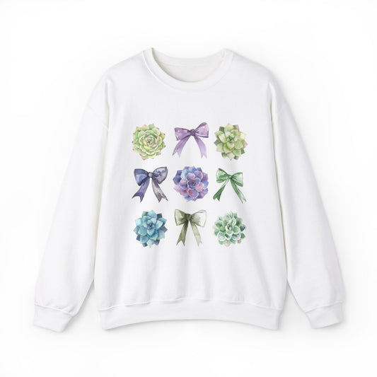 Succulent Coquette Bows Cozy Sweatshirt, Succulent Lover, Plant Lover Gift